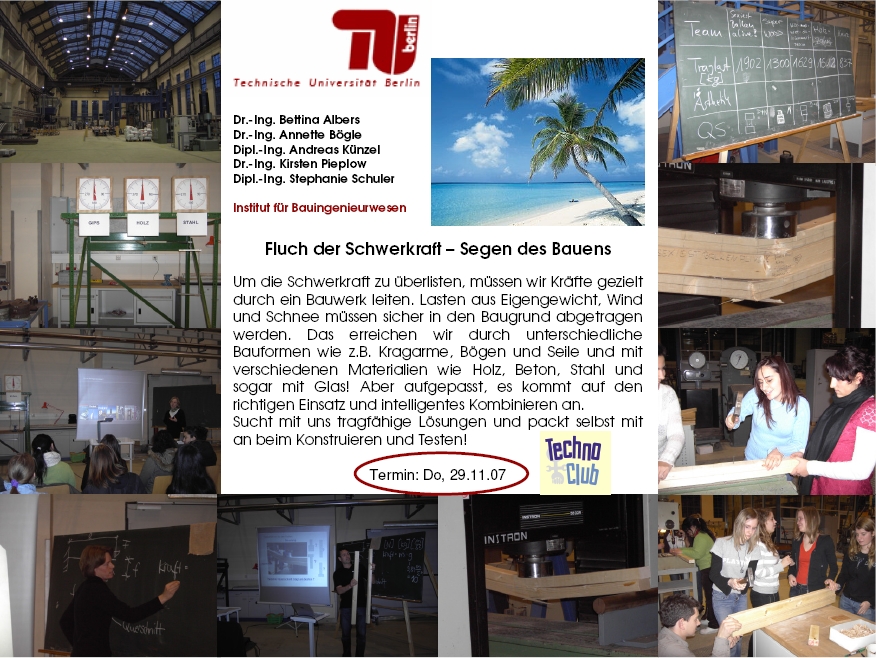 an der TU Berlin am 23.04.2009 im Fachgebiet Grundbau und Bodenmechanik - Degebo Schlitzwandversuch Dr.-Ing. Bettina Albers, Günter Körner, Harald Podeswa, Boguslav Grzedzinski Offshore-Windenergieanlagen Dipl.-Ing. Ercan Tasan Massivbau und allgemeiner Teil Dipl.-Ing. Diana Bartsch, Fachgebiet Entwerfen und Konstruieren - Massivbau |